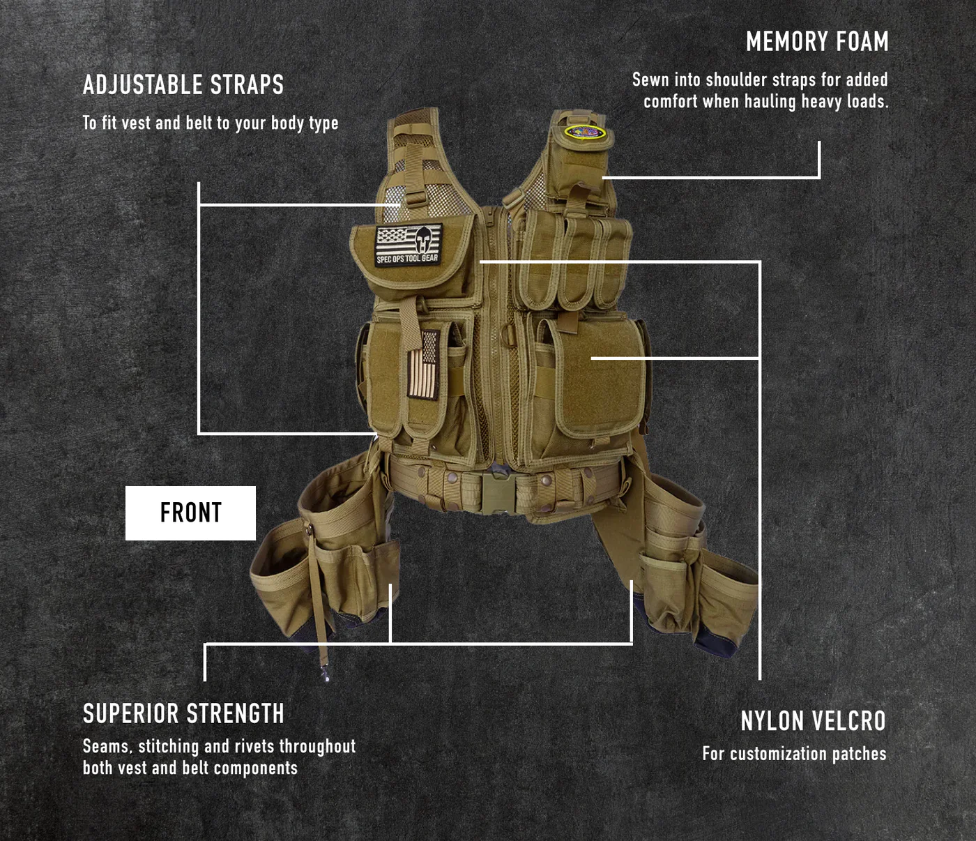 The Tactical Tool Vest for those who must build, carry, and create at all times. The SF-18C vest is named for our Special Forces Engineer Sergeants - our enlisted construction specialists.